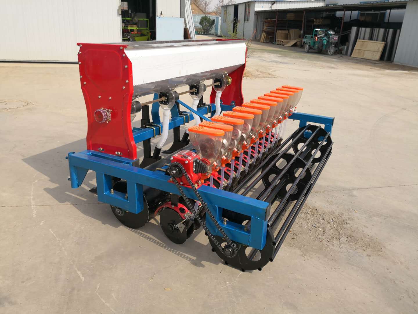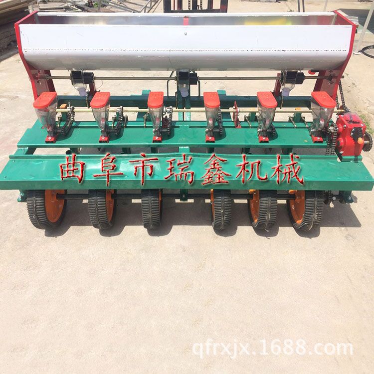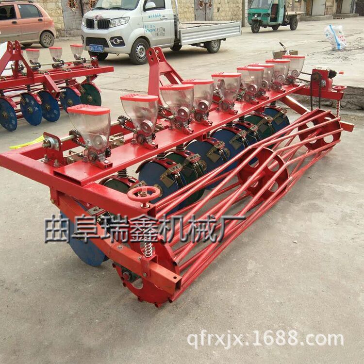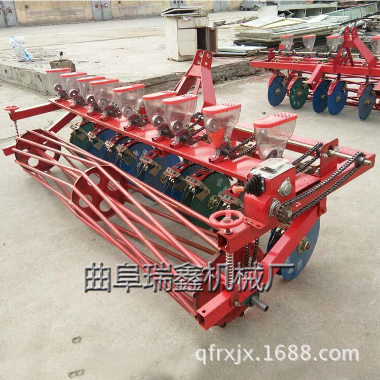 该机适用于秸秆还田机地播种谷子、蔬菜、高粱,一次作业可完成平地、开沟、播种、施肥、镇压、覆土、打竖畦等项工序。曲阜市瑞鑫农业机械有限公司新一代免耕开沟器采用锰钢淬火的工艺生产,硬度高、强度大,入土性能好,并设有刮土装置,能很好地在粘土中作业。筑埂器上下左右可调,既可以筑埂,也可以填车沟,调整时无须停机下车,触手可及。